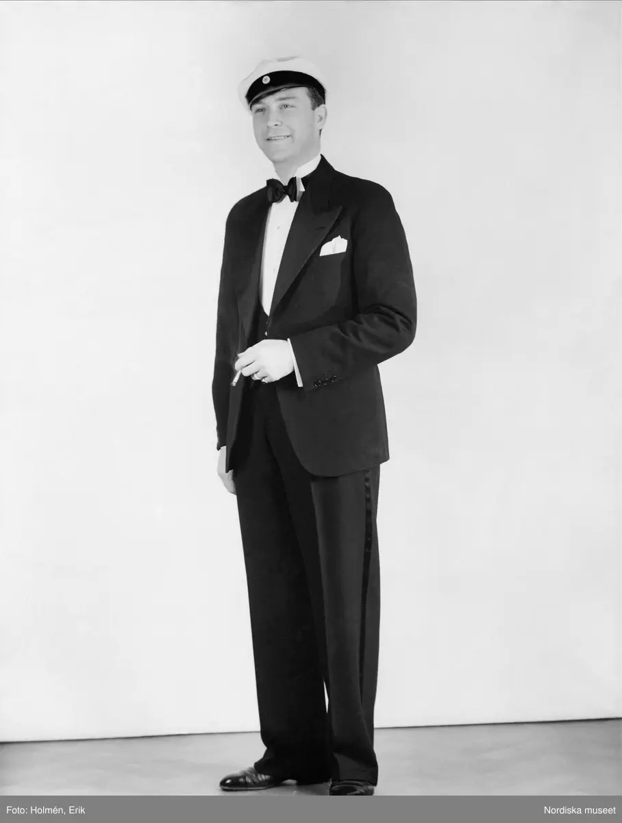 En herre i smoking och studentmössa. Nordiska Kompaniet.
