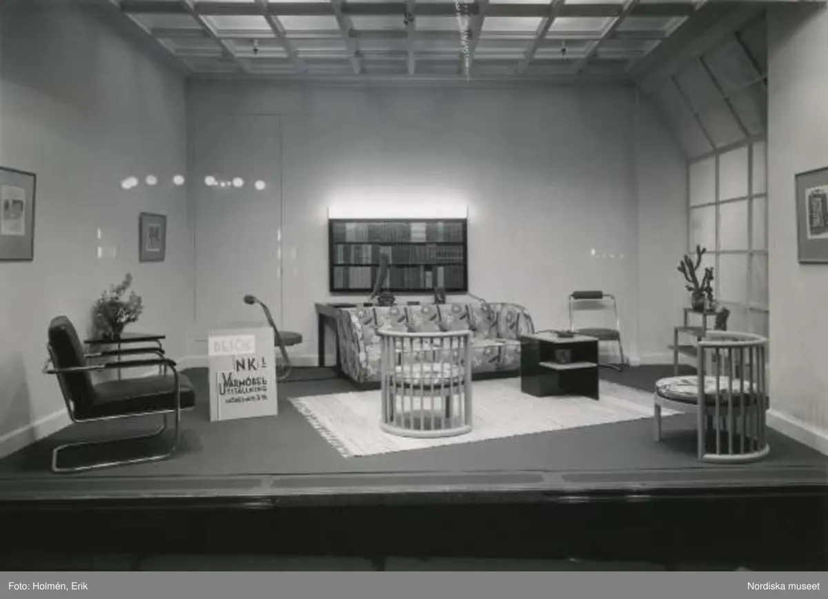 Utställningsinteriör med möbler på NK. 1932. Soffa, fåtöljer.
