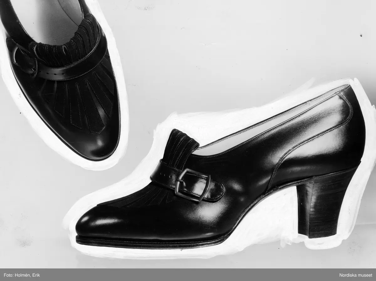 Promenadpumps av brun eller svart boxkalv med garnering av svart mocca.