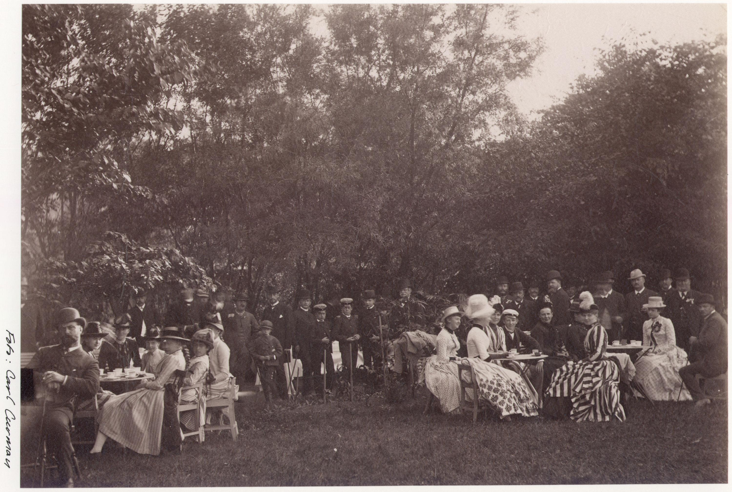 Människor i parken vid sällskapsfest. I mitten "gossarna Hamilton".