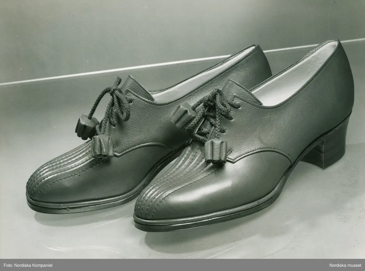 "Promenadskor av det nya materialet Reloxkalv. Mellansula av kork".