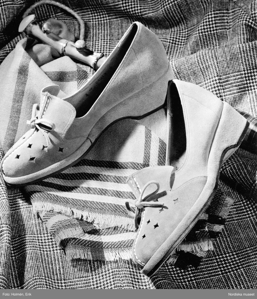 Moccaskor med utskurna stjärnor på rutig textil.