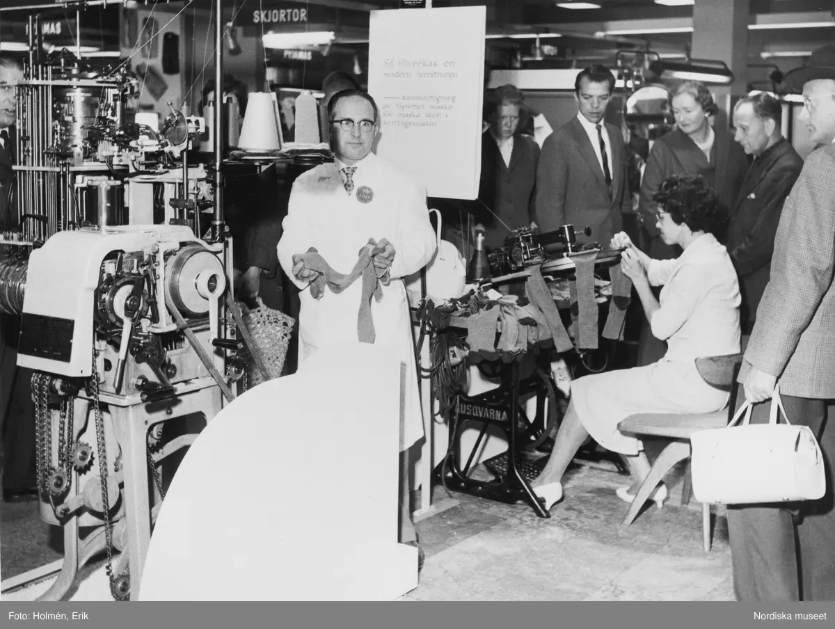 Förevisning på Nordiska Kompaniet. "Så tillverkas en modern herrstrumpa."