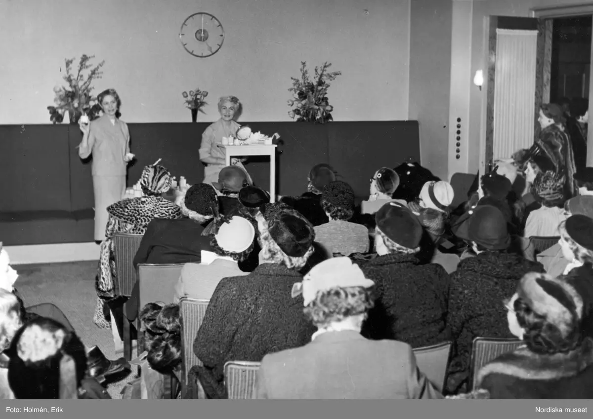 Visning av skönhetsprodukter från Dorothy Gray på Nordiska Kompaniet.