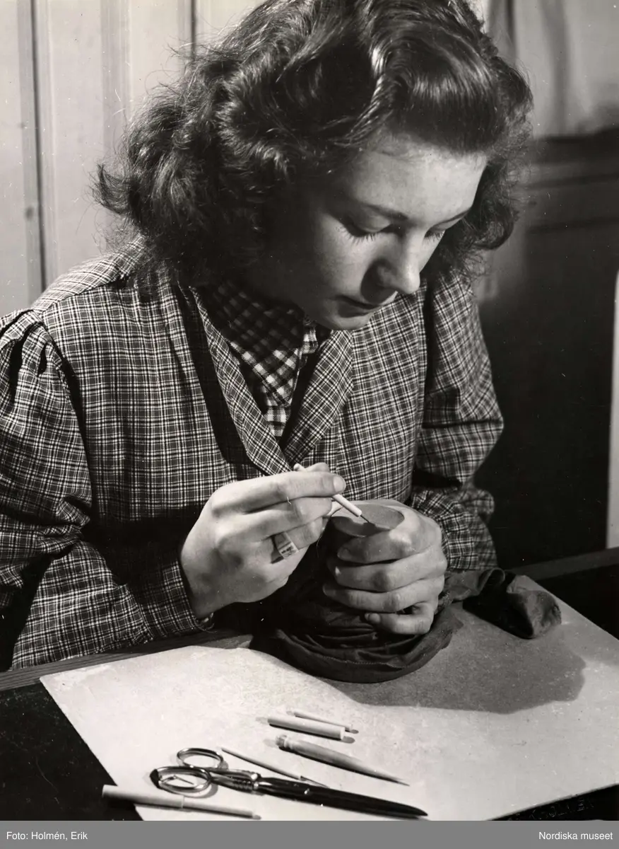Kvinna i arbete vid uppmaskningsateljén på Nordiska Kompaniet i februari 1943.