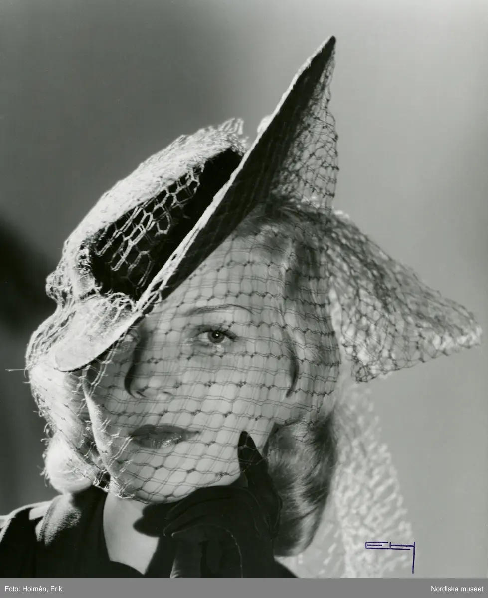 Porträtt av kvinna i hatt med ljust flor från Rose Descat.