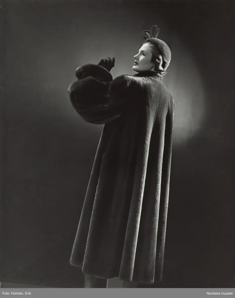 Nordiska Kompaniet. Kvinna i päls och hatt.