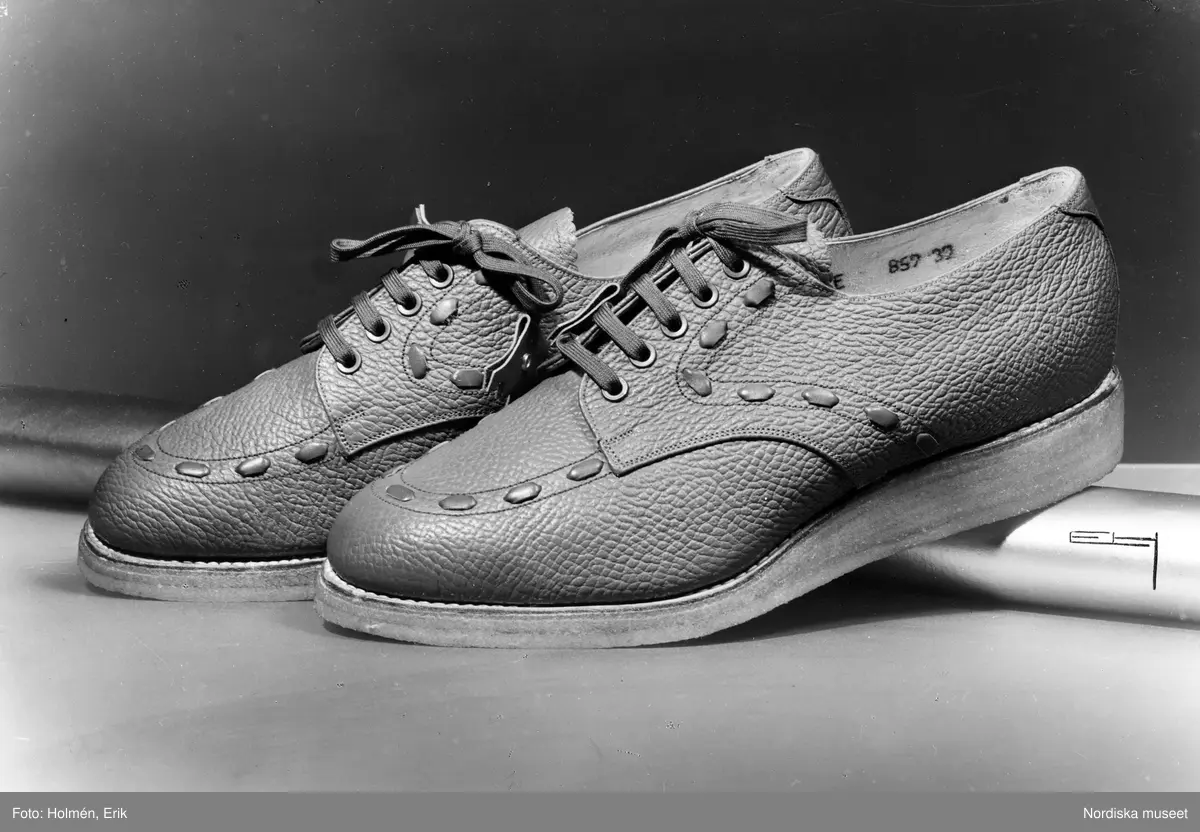 "Ett par grova promenadskor i ljus "agulakalv" - ett amerikanskt sportläder som är övervägande i höstens rustika sportskor."