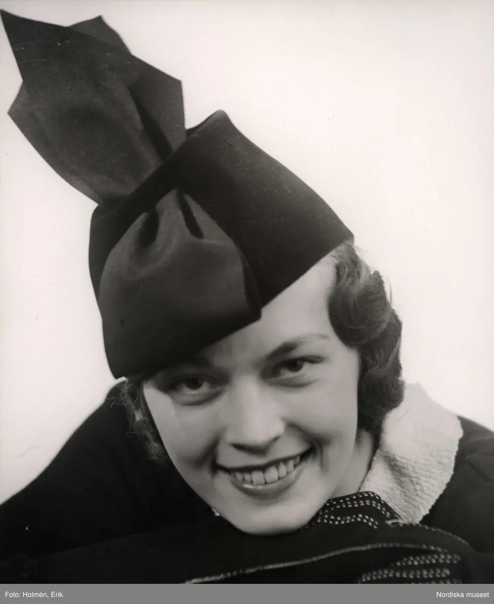 Modell med damhatt. Hattar på NK (Nordiska Kompaniet) i Stockholm, oktober 1936.