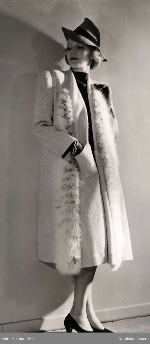 Kvinna med kappa och päls. Nordiska Kompaniet.