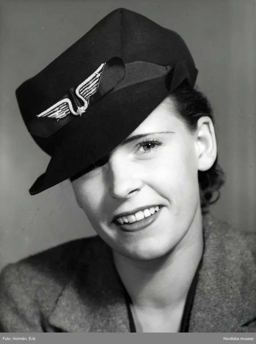 Kvinnlig modell i hatt med ripsband, Nordiska Kompaniet, Stockholm.