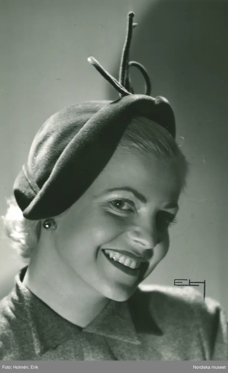 Porträtt av kvinna i grön velourhatt av Maud Roser.