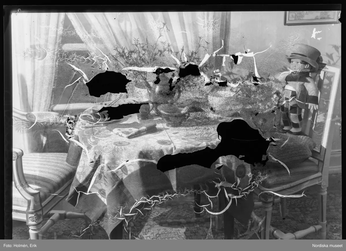 Interiörer och närbilder från utställning. Fotografens förteckning/ anteckning: Dukade bord