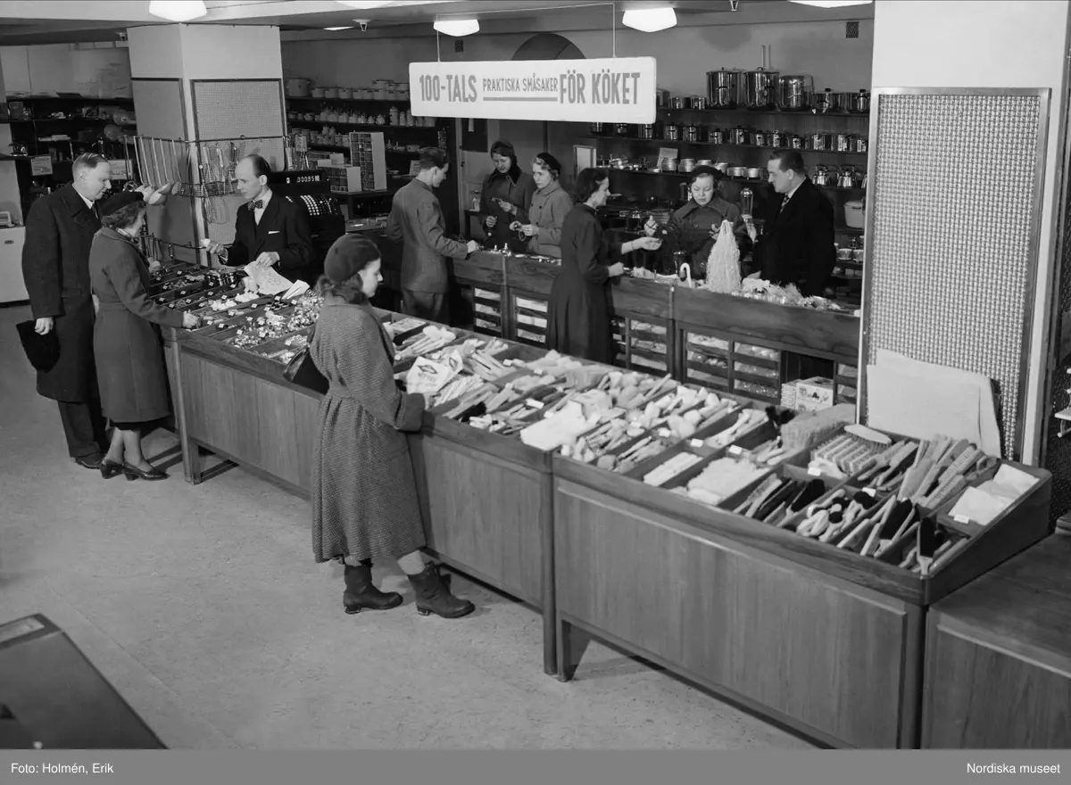 SSS. (Semi Self Service) Köksgeråd. Kunder handlar köksredskap, Nordiska Kompaniet.