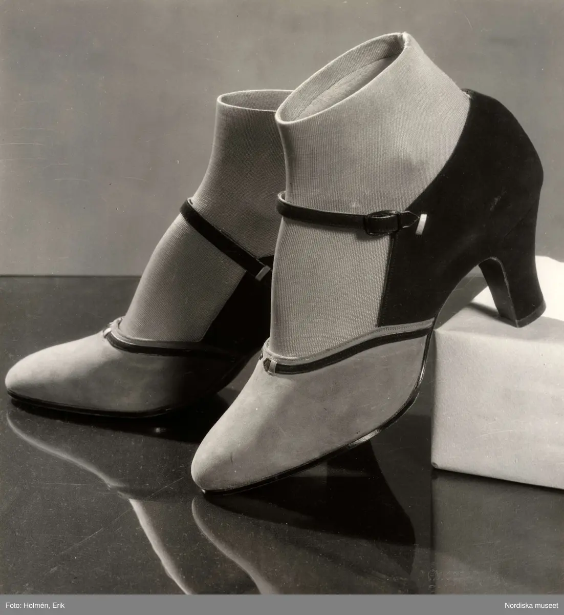 Nordiska Kompaniet, skomode september 1929. Tvåfärgad damsko med vristrem