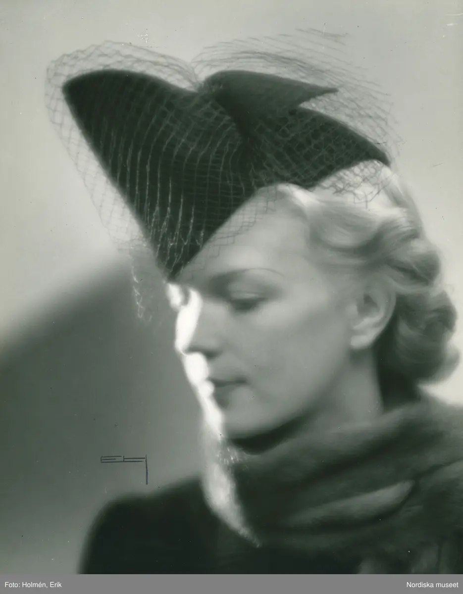 Fb, Porträtt av kvinna i hatt med flor.