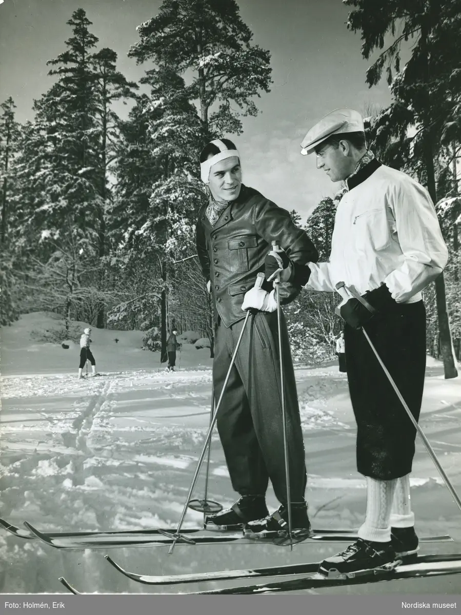Två skidåkare i skidkläder.