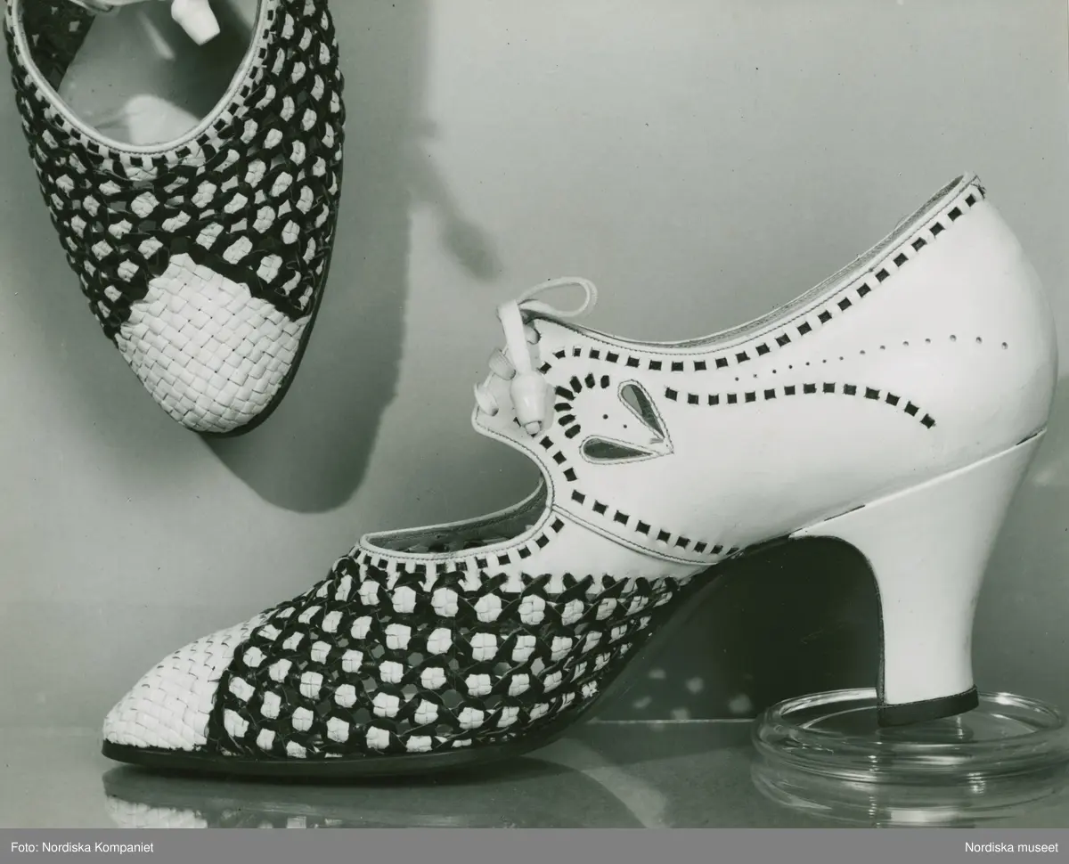 "Sommarskor, Lambelle av vitt skinn med svart inflätning".