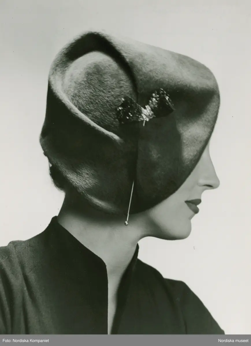 Porträtt av modell i grön velour monterad med pil i guld, av Gilbert Orcel.