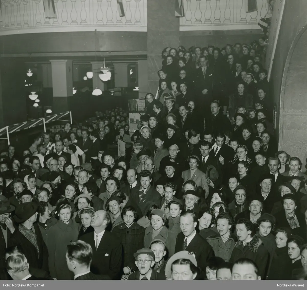 Folksamling på Nordiska Kompaniet. Text med blyerts på baksidan: "Invigning av Italiana mars -53".