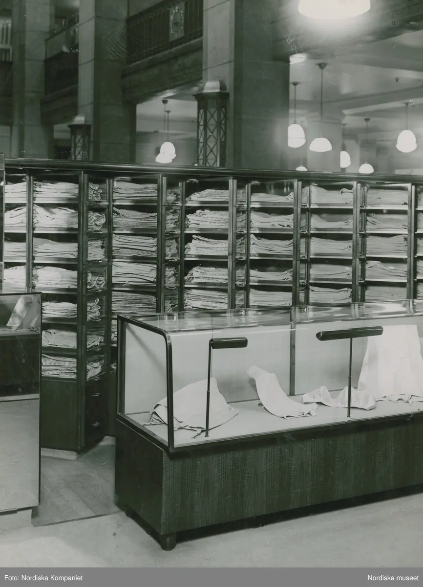 Butiksinteriör med korsetter och andra underkläder. Nordiska Kompaniet.