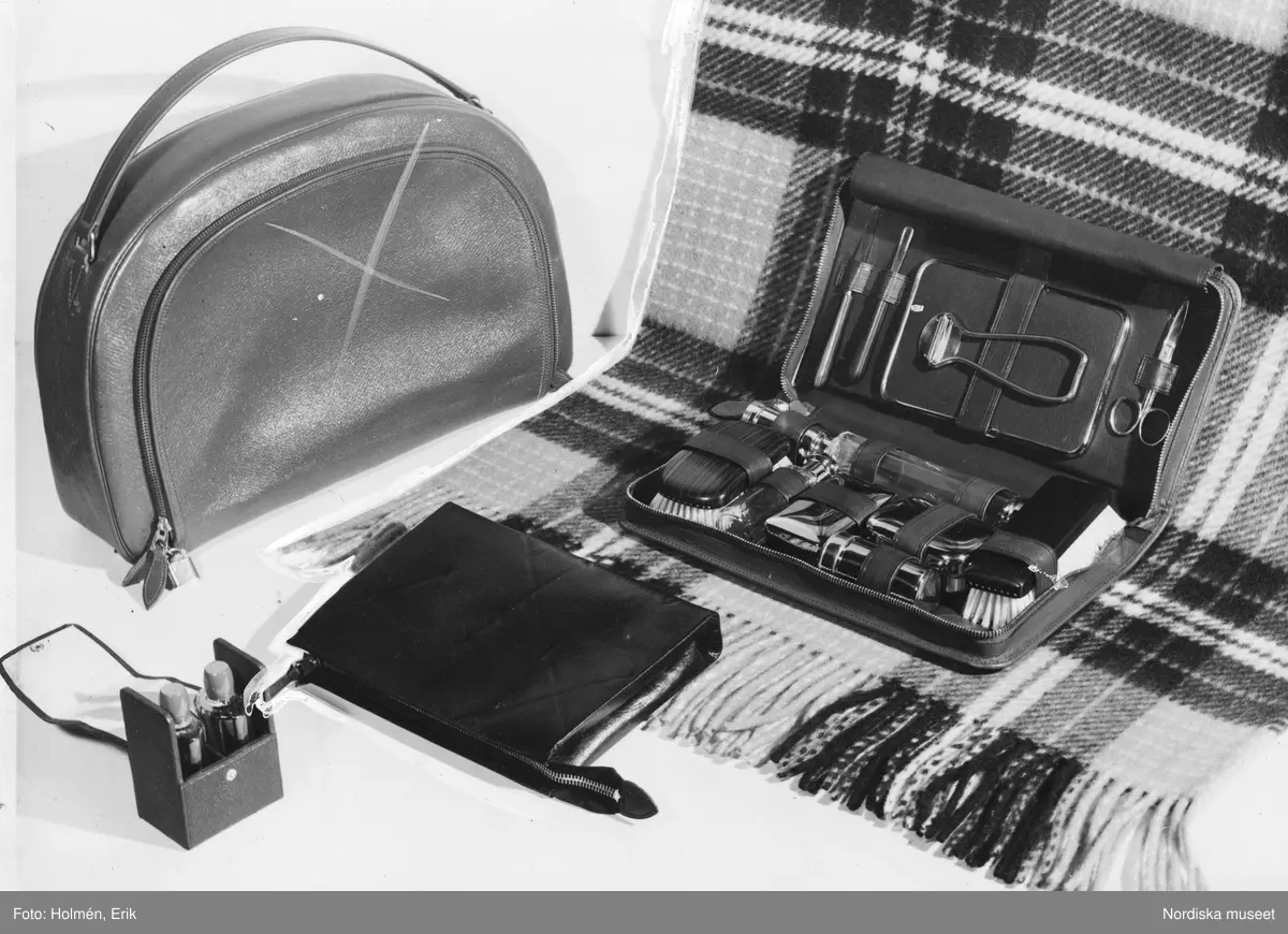 Reseffekter. Necessär, halsduk och väskor.