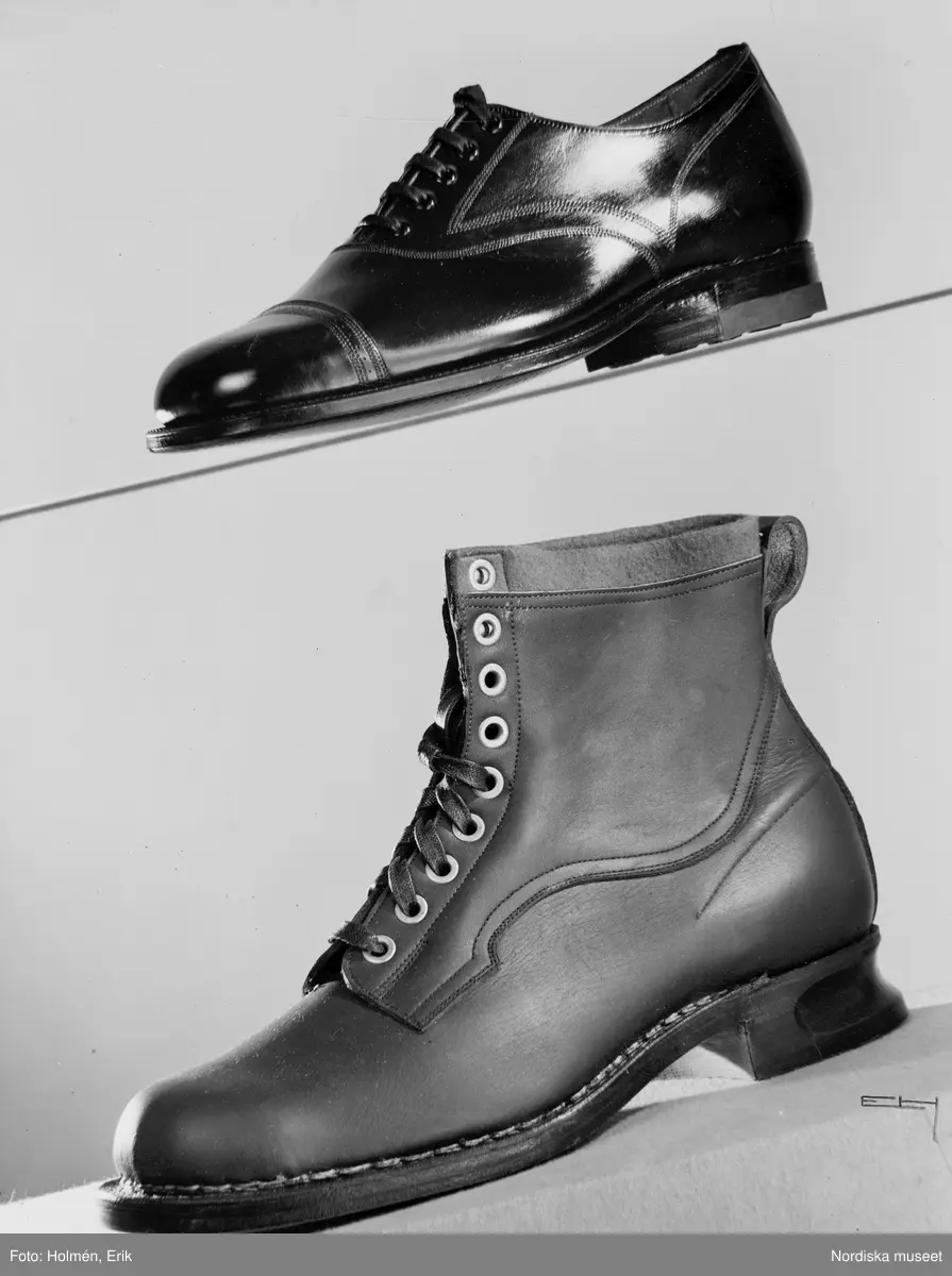 En oxfordsko och en känga.