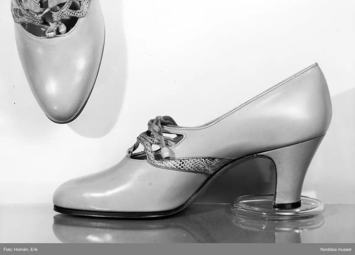 Promenadskor med snörning och ormskinn.