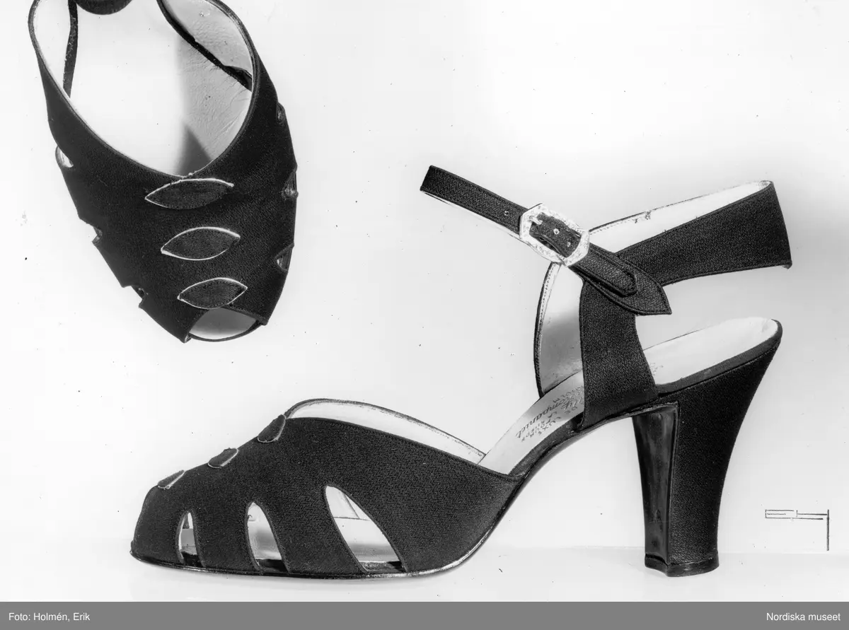 Aftonskor i svart siden med sil och paspoaler, öppen tå utan kappa.