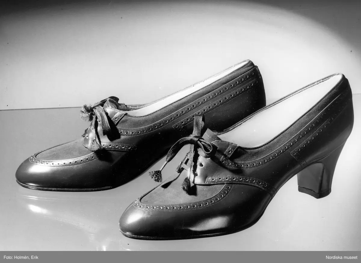Promenadskor av vinröd boxkalv med mocca, klack 4,5 cm.