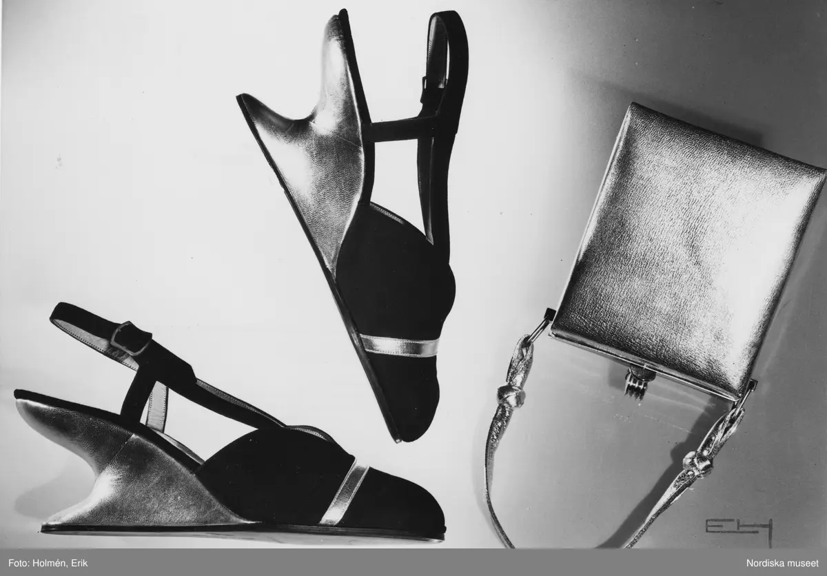 Silverfärgad handväska och aftonskor med silverfärgad sula.