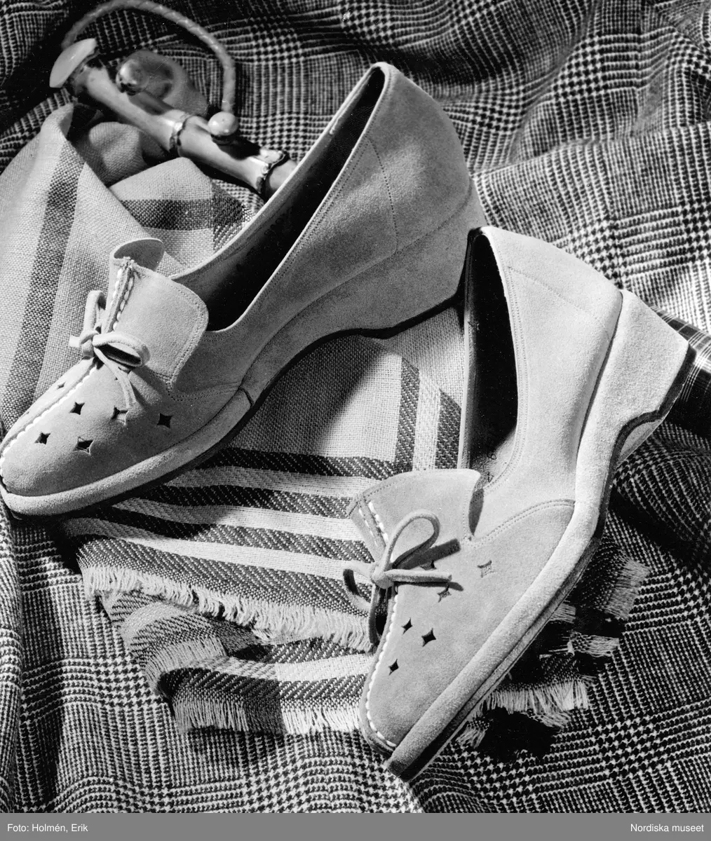Mockaskor med utskurna stjärnor på rutig textil.