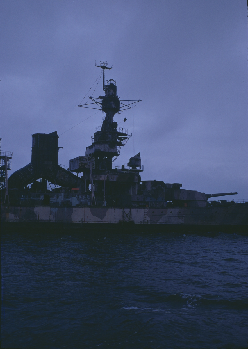 Bilden föreställer pansarkeppet Gustaf V under bogseringen.