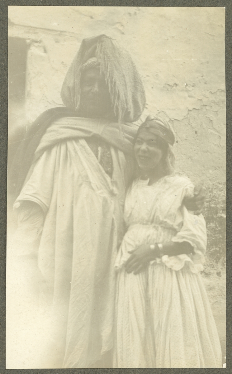 Bilden visar ett par i arabisk kläder. Kvinnan verka vara gravid och har lagt en hand på magen.