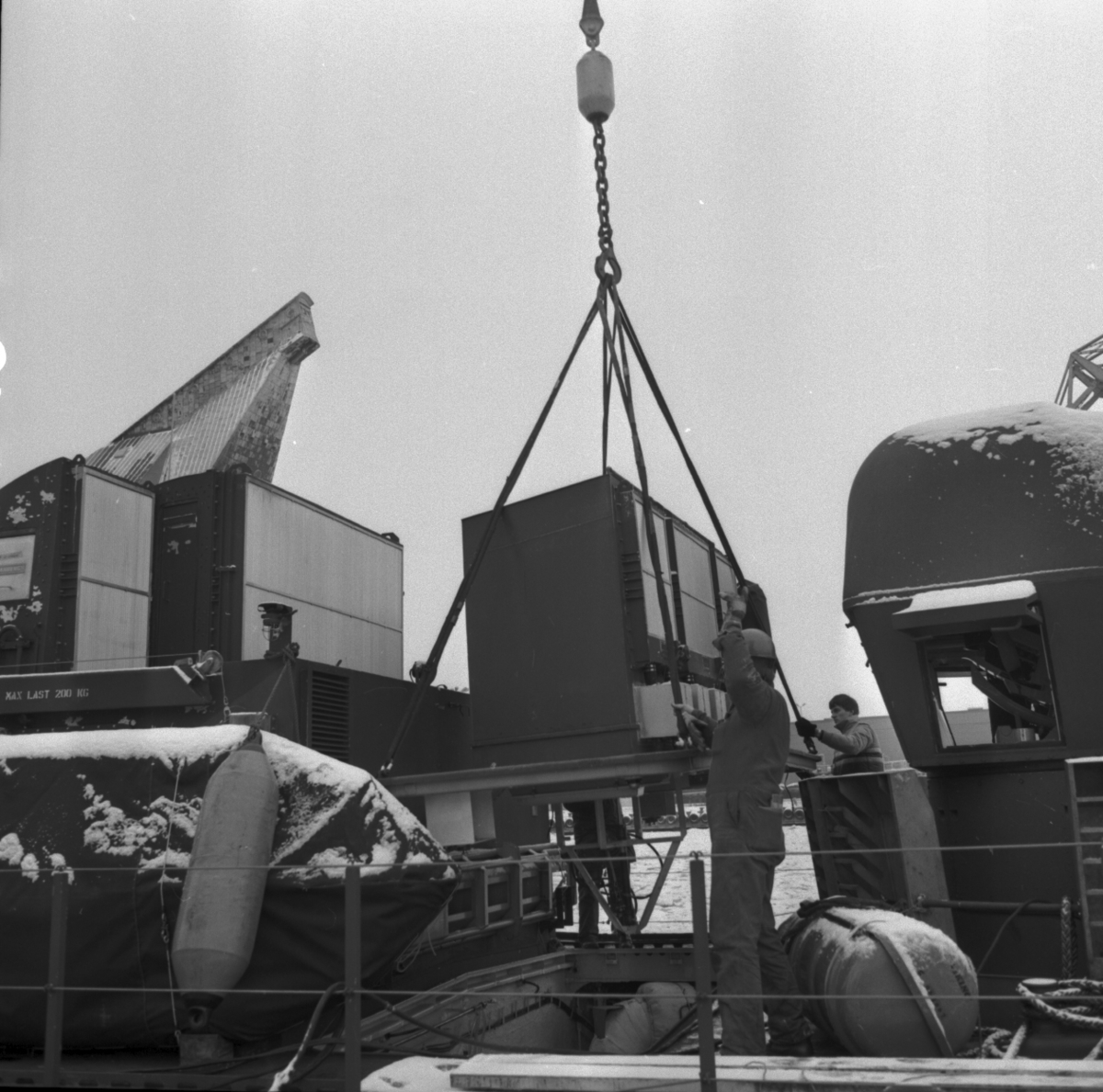 Lyft av luftintag till kustkorvettern Stockholm.