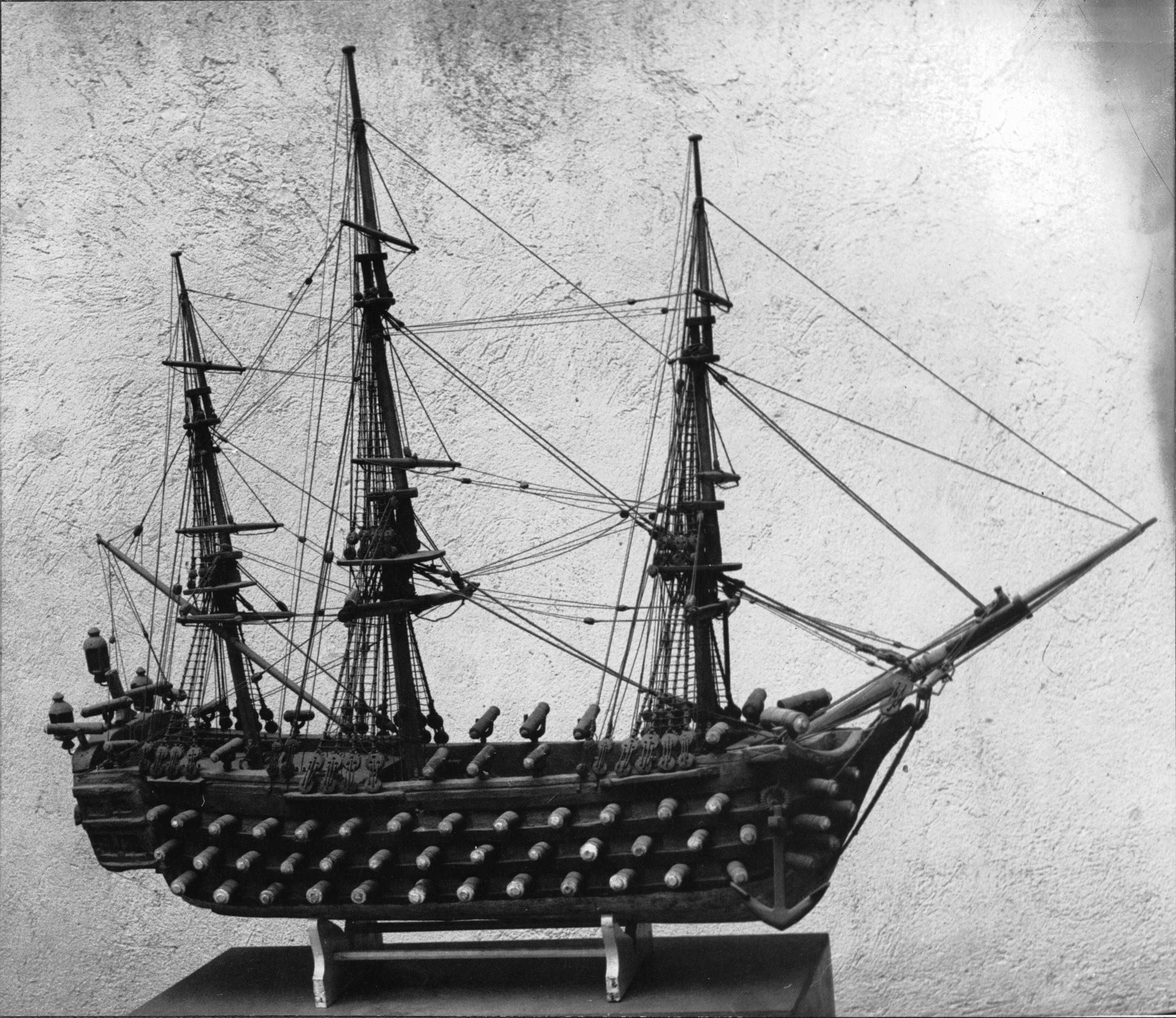 Modell av ett linjeskepp från 1782, styrbordssidan. Göteborgs sjöfartsmuseum.