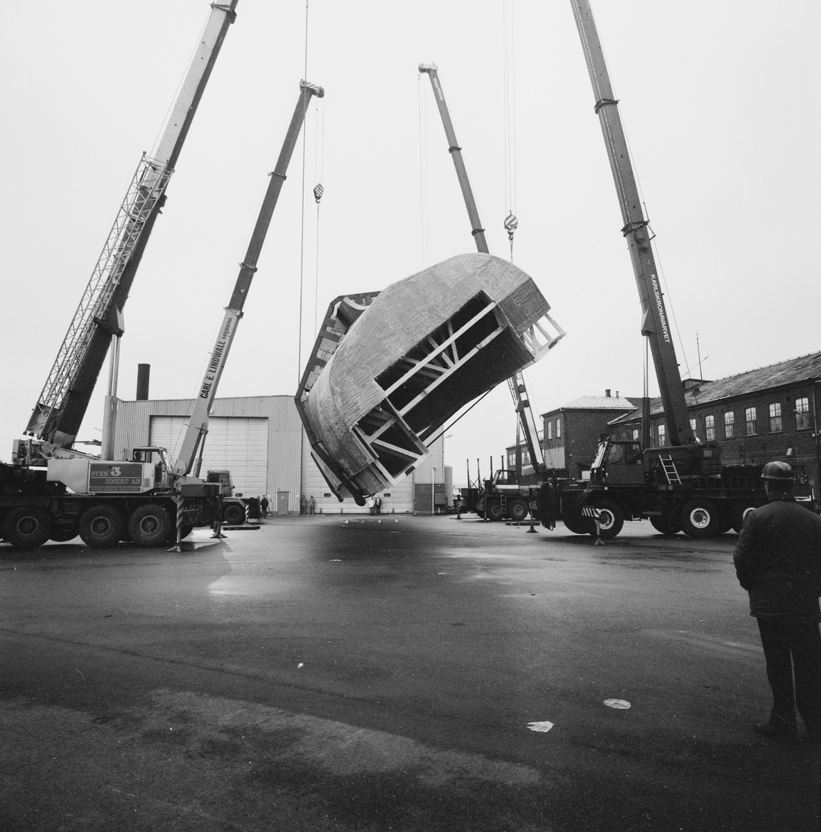 Titel: Vändning av båt nr 2 YSB plastverkst.