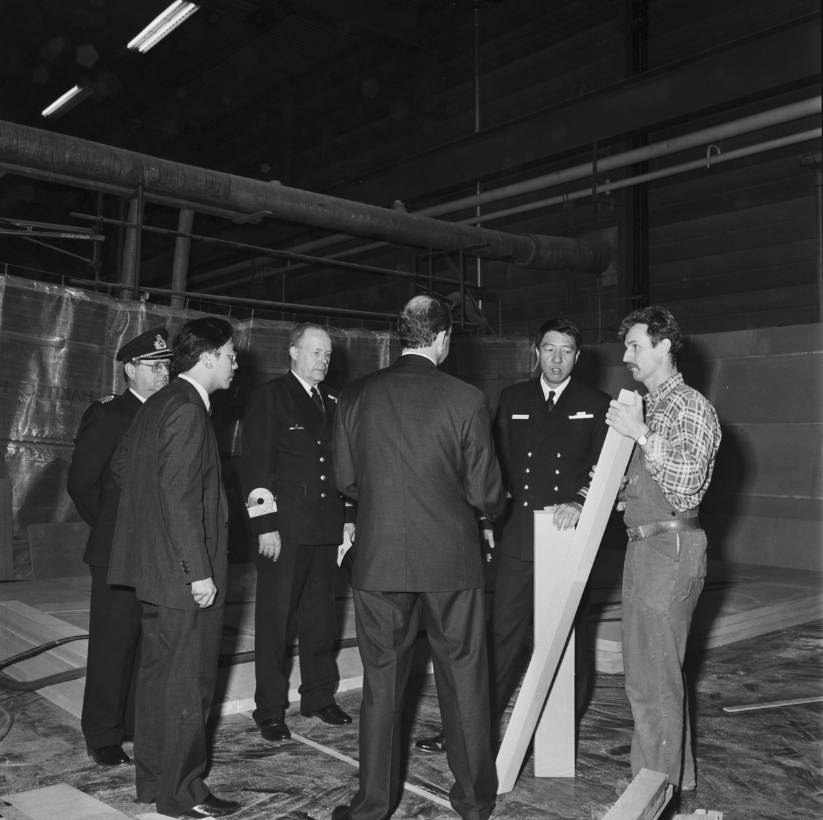 Varvschefen talar med den singaporianske marinchefen och visar honom Örlogsvarvet.