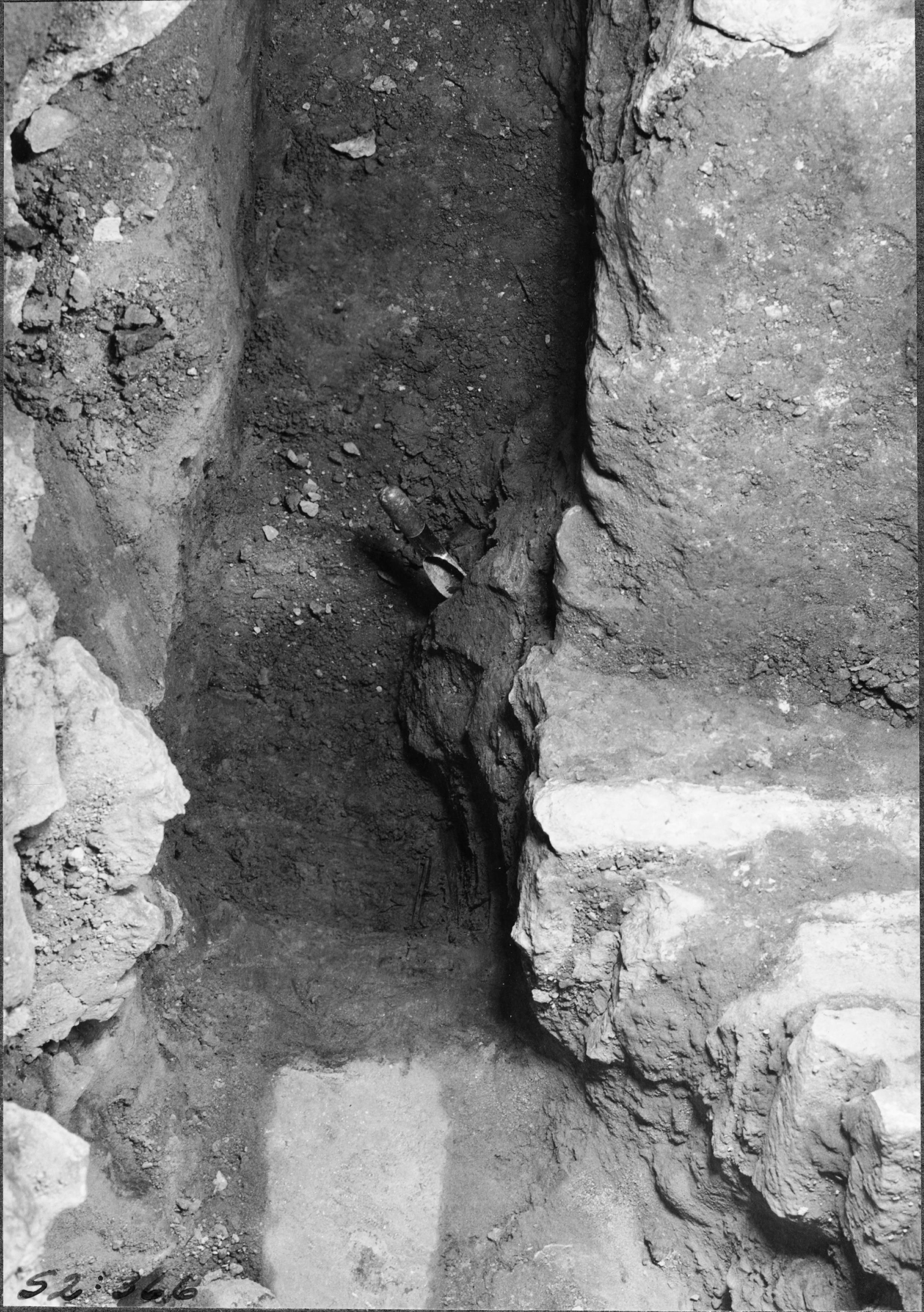 Grävning inom kyrkan, schakt X, provgrop väster om södra trappan.