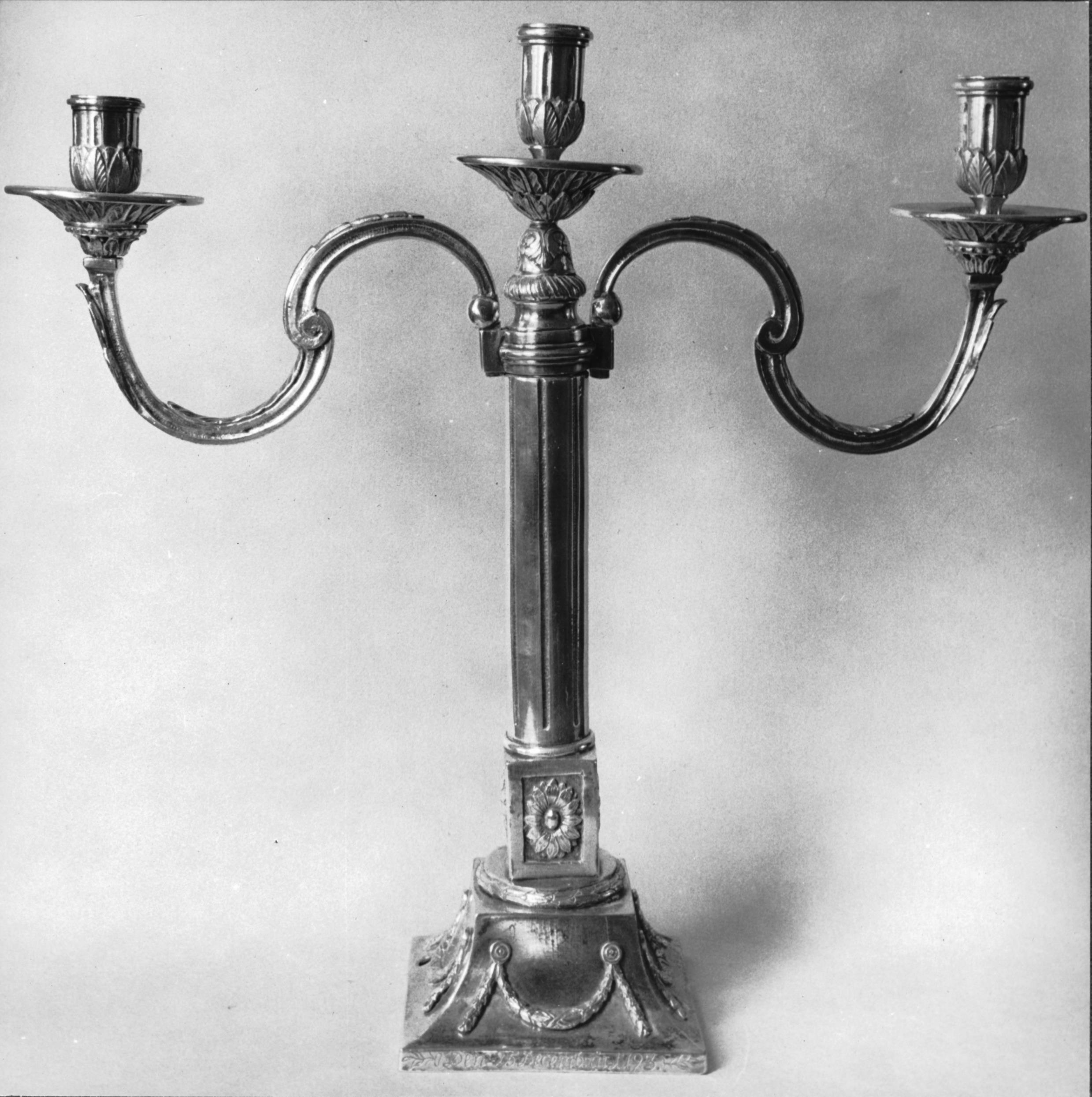 Kandelaber av mässing, skänkt 1781 av Margareta Charlotta Ehrenswärd.