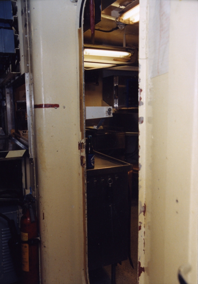 bilden tagen in i skeppsköket akterifrån vi kan skymta 1 st lättöl