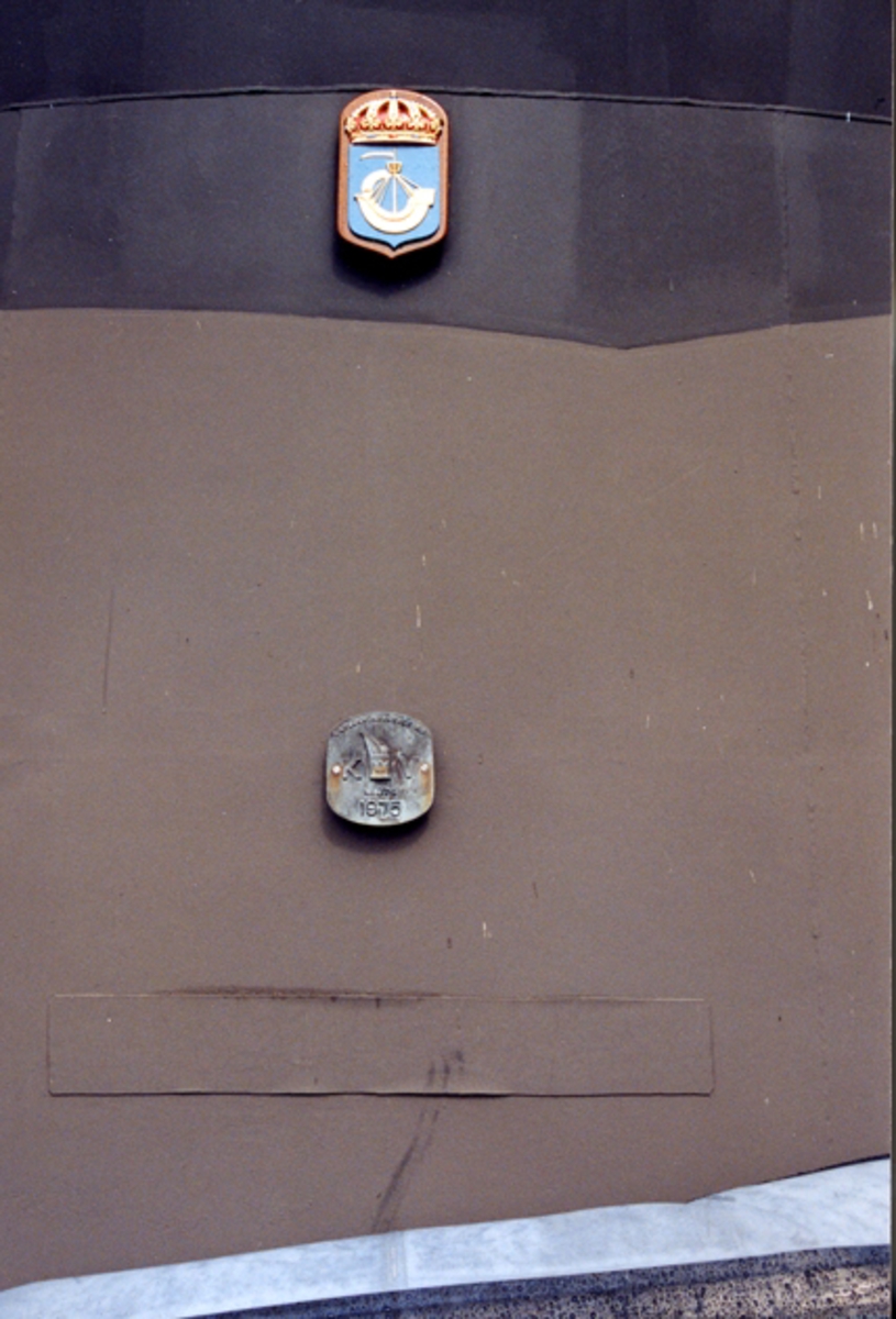 Brygghusfront med Västerviks vapenskjöld och Karlskronavarvets tillverkningsskylt