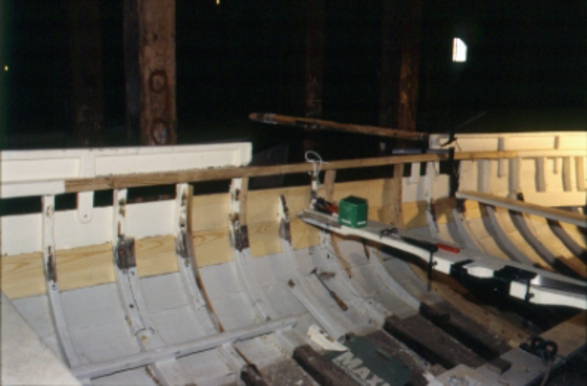 skador på bark, uppkomna i samband vid angöring utanför slup o barkasskjulet på stumholmen
