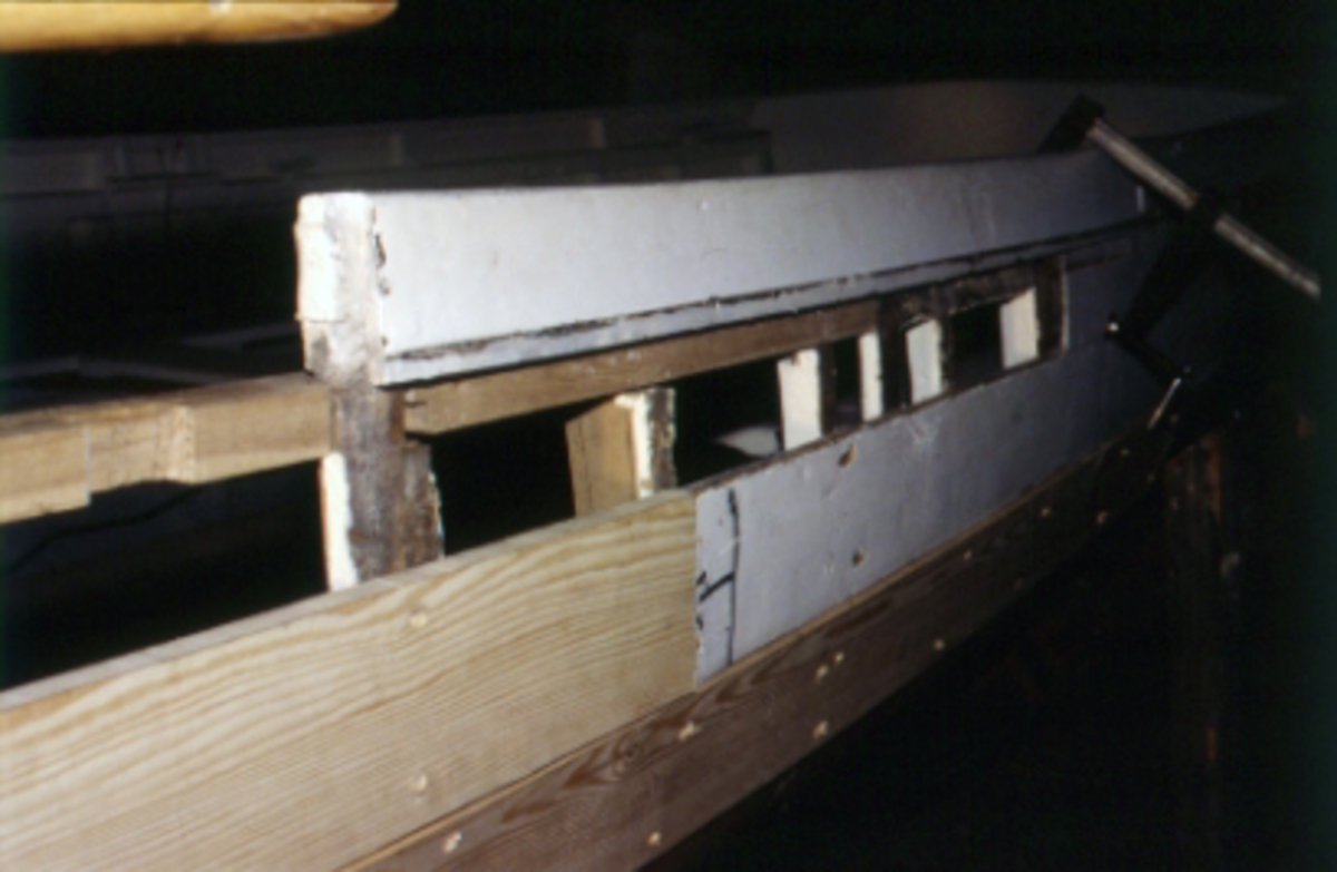 skador på bark, uppkomna i samband vid angöring utanför slup o barkasskjulet på stumholmen