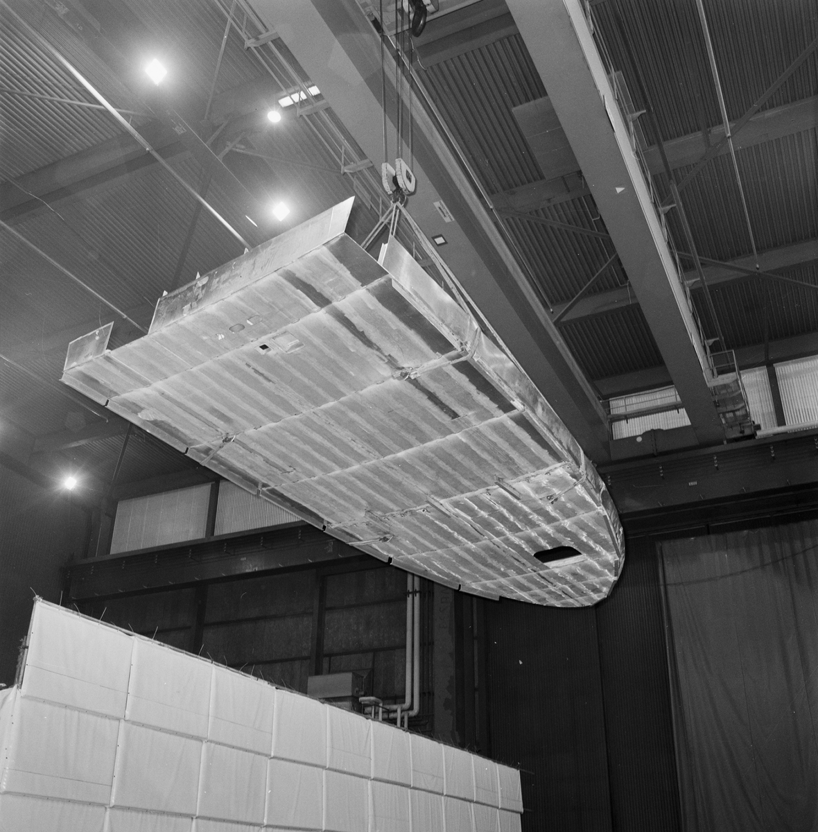 Lyft av förliga däcket till KBV 301 i flakhallen.