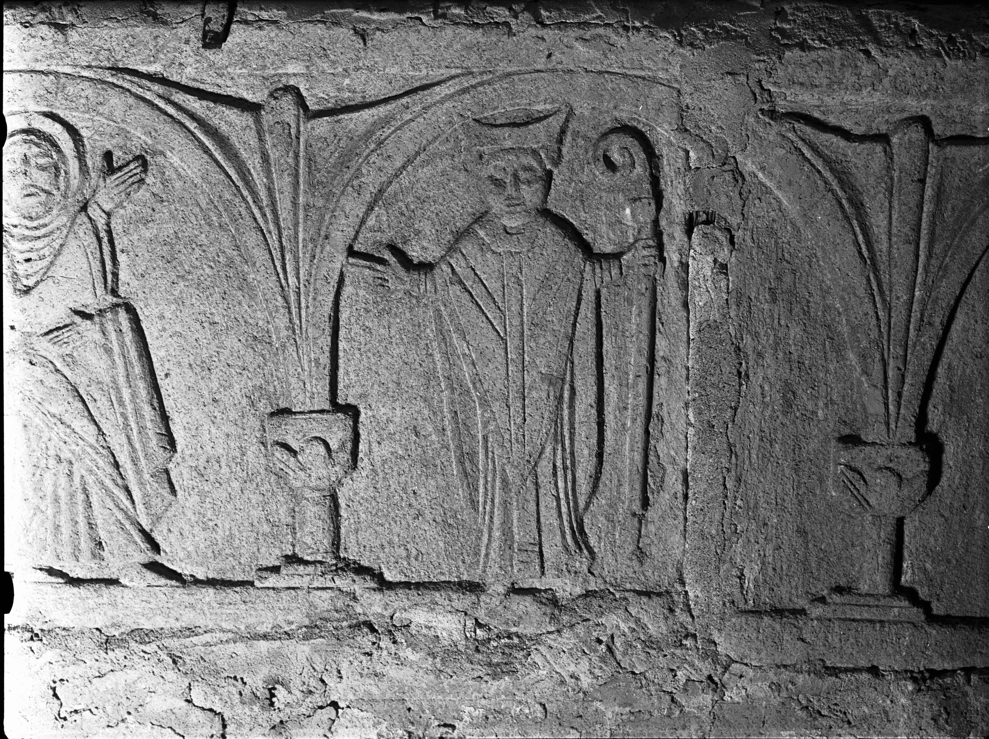 Byzantiosreliefer på korets sydfasad. Välsignande biskop.