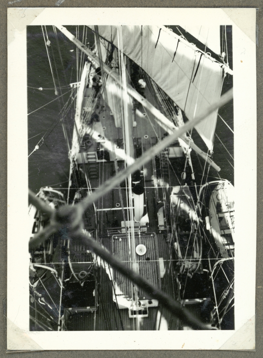 Bilden föreställer vy från riggen ner på däcket av skolfartyget av Chapman