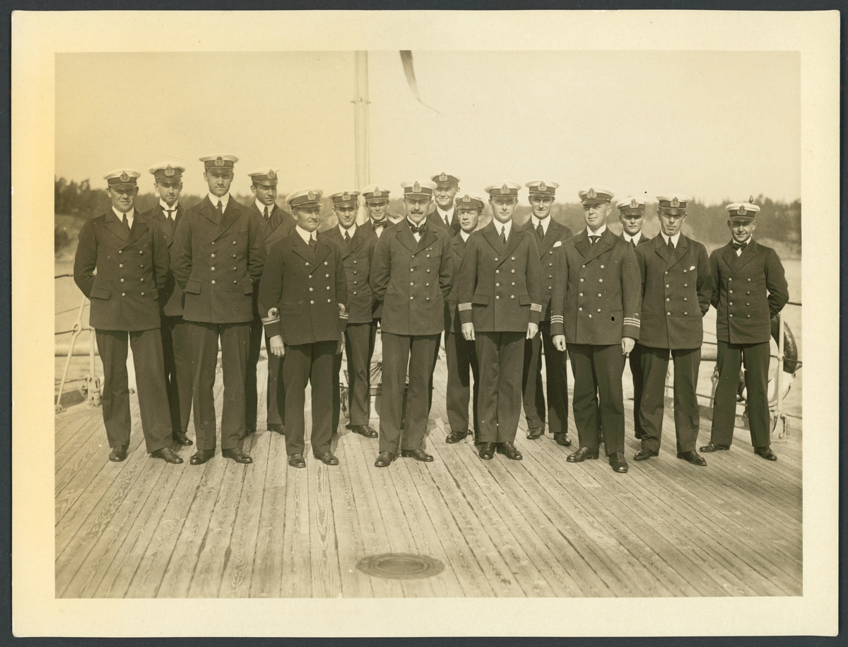 Bilden föreställer fartygschefen och sjöofficerare ombord på Fylgia.