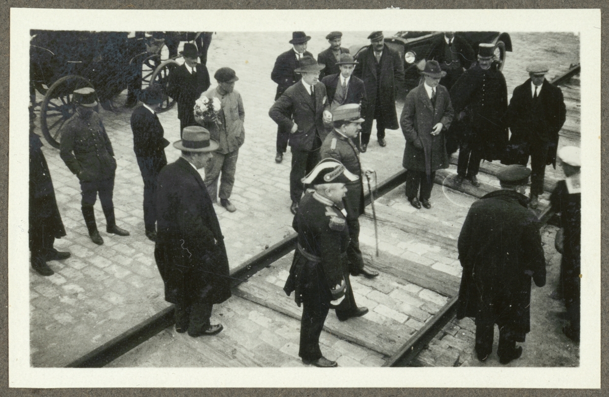 Bilden viser en grupp militärer i paraduniformer.