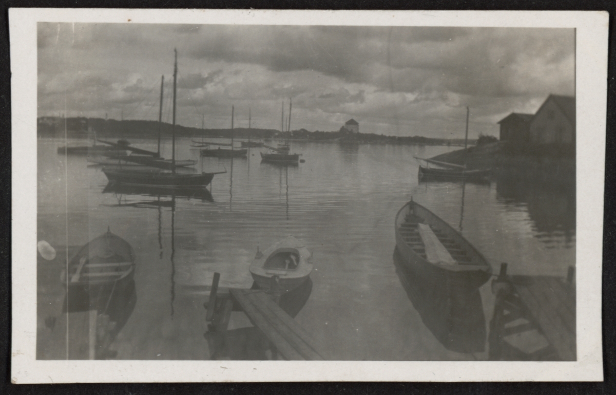 Segelfartyg, båtar liggande vid bryggor o i hamn utanför Stumholmen